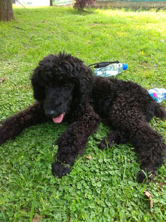 一會兒沒有看見它竟然咬著我的鞋子去磨牙了,把我的鞋子咬的一個坑一個坑的,我剛要伸手去打它,它立馬倒在地上裝可憐,一副任我宰割的樣子,我看了它的樣子後突然笑噴了,真是個小開心果,一副黑不溜秋的樣子,就剩倆眼睛給那發著點光,躺到那裡一動也不動,再看著我的鞋子被咬的樣子,真是讓我欲哭無淚。