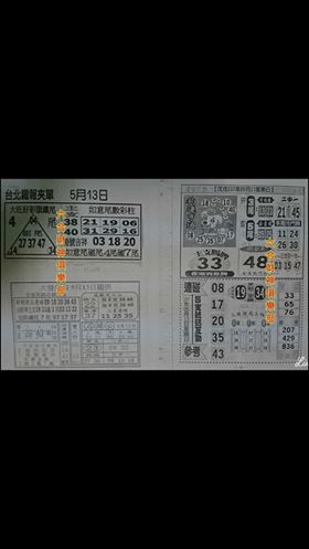 5/13 台北鐵報夾單-六合彩參考