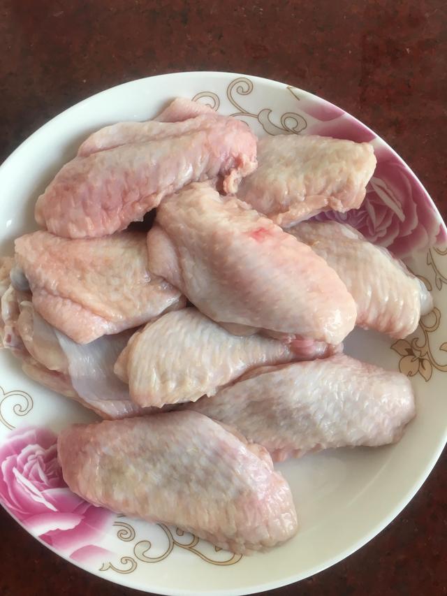 1、雞翅中洗凈,用刀給每個雞翅中表面輕劃開兩刀裝盤備用!(如圖)