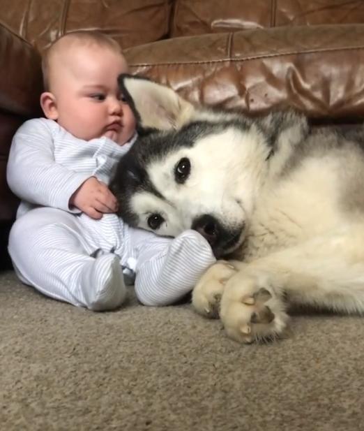 影片中,黑柴看到馬麻手裡的唐老鴨娃娃,眼睛瞬間張的像「彈珠」一樣大,只見它乖乖地坐下,直到聽到「可以!」才敢大口的咬住「鴨頭」