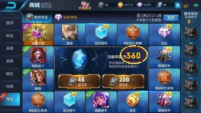 都說榮耀水晶幸運值360必中,可是玩家身為土豪一直抽到幸運值357都未能獲得他心心所想的榮耀水晶,眼看著馬上就要360幸運值的多少有些失望,可是接下來就是絕望。