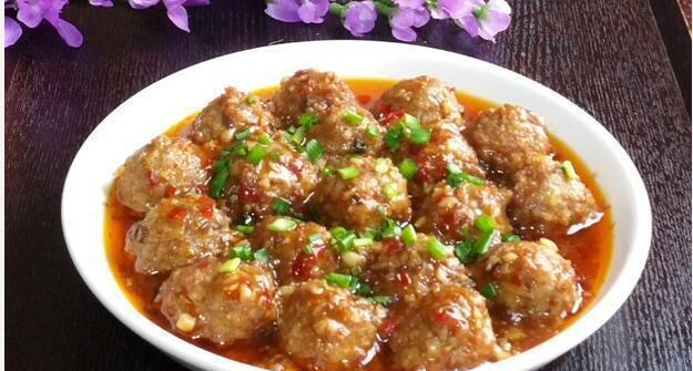 8.再下入藕丸,加鹽、糖醋汁、翻炒勻,加入鮮湯、料酒燒至收濃湯汁,加入鹽,水澱粉推勻出鍋