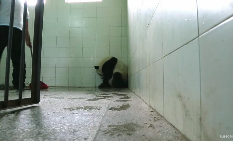 下面這隻大熊貓媽媽分娩後,就對寶寶非常疏離,工作人員希望它能親自照顧寶寶,給寶寶做完檢查後,又將寶寶放到了媽媽的籠子裡。