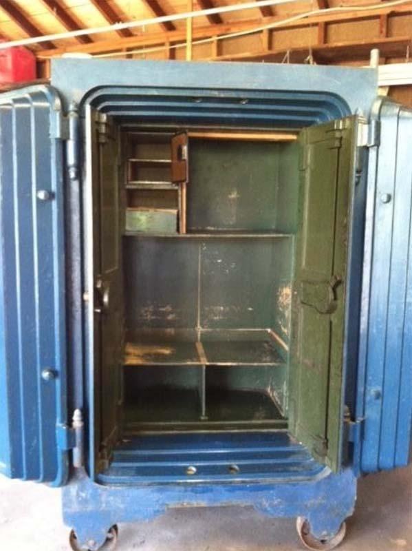 打開保險櫃後,他發現了裡面的東西大吃一驚,除了一把步槍還有很多銀幣,看著就像一個搶劫犯的戰利品倉庫。