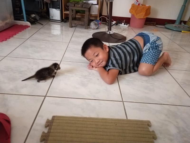 棕色喵喵被灰喵斷了水路,忍不住伸手一揮,讓灰喵往後一縮,它才得以靠近小水流,伸出舌頭輕鬆愜意地喝著水,這時灰喵看對方明明就喝得到,也想再試一次,於是它又再度把頭慢慢伸到了水龍頭下面,想喝一口清涼的水水...