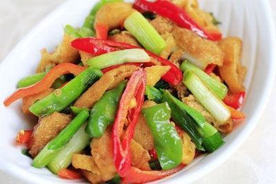 8.下入切好的蔥翻炒均勻