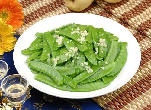 用料:荷蘭豆300克、食鹽1/2茶匙、蒜2瓣、植物油1湯匙