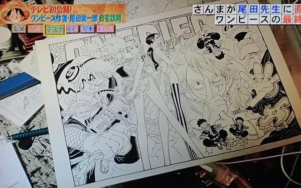 尾田榮一郎親繪畫稿放在書桌上,網友截圖仔細觀看。(圖/翻攝自推特)