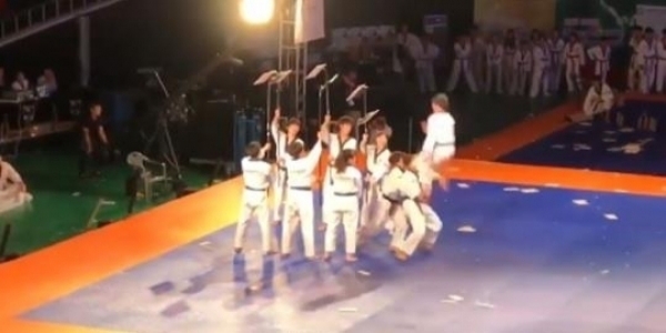 接著影片中的這位男子便拿起菜刀用力地往下切,打算要將巨型西瓜剖為兩半,看看西瓜內部到底長怎樣,但由於這個西瓜實在太大,根本沒辦法輕易剖開來。