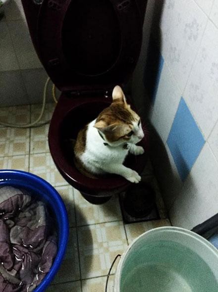 稍微煎定型之後,把蛋黃倒在上面