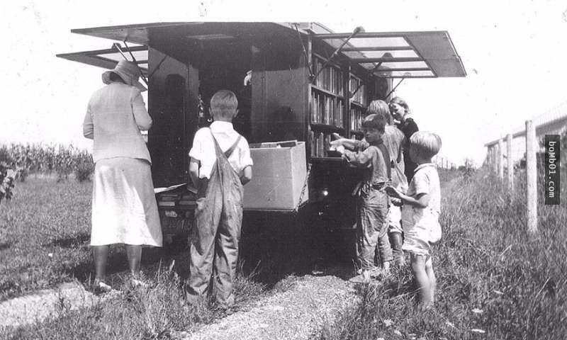 ▼1928 年,移動圖書館來到郊區