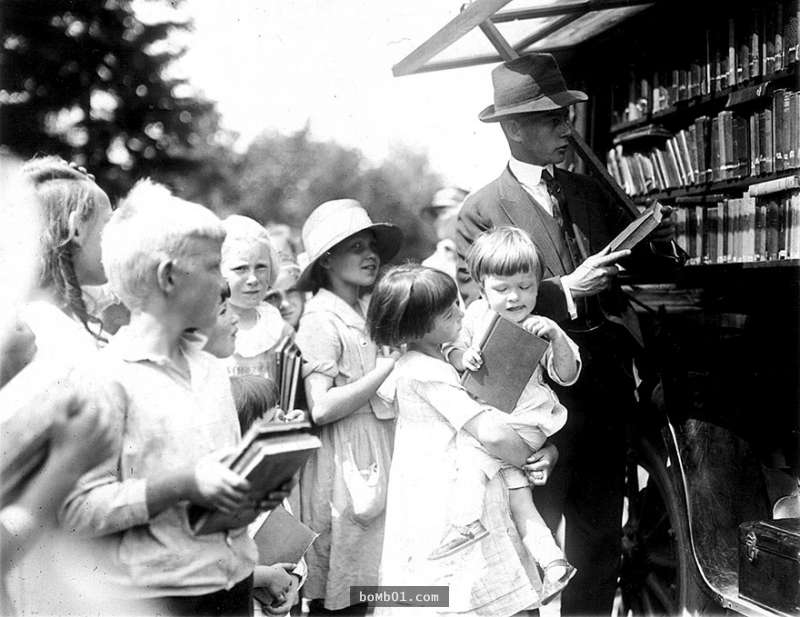 ▼1925 年的移動圖書館