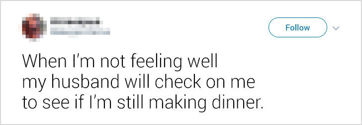 12. 「當我不舒服的時候,我的老公會來看看我,看我是不是還可以做晚餐。」