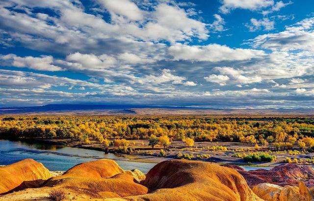 作為世界上最古老、面積最大、保存最完整、最原始的胡楊林保護區。每年十月底至十一月初,是這裡最美的季節,塔里木河兩岸遙遙千里的胡楊樹林一片金黃。