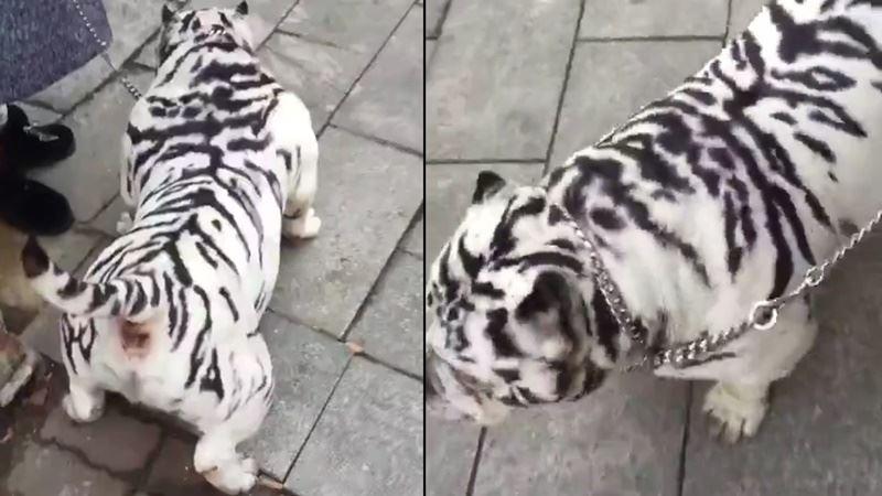 街上偶遇一隻小老虎,靠近一看笑出聲,這位主人也太有才了!