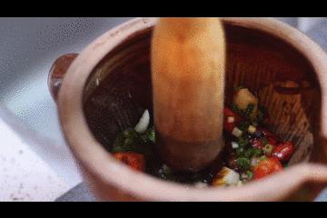 倒入切好的假蔞葉子,翻炒出香味融入豬肉里,此時整個廚房都有一股濃濃的香味,食慾情不自禁的讓自己吞口水。