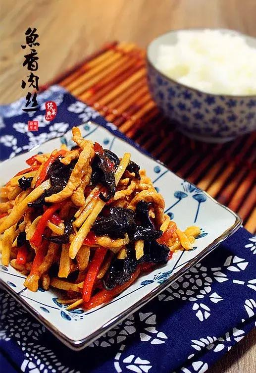 魚香肉絲,經典川菜。因為口味有魚的香味而得名,其肉絲軟嫩、配料脆爽、口味咸甜酸辣兼備,是有名的下飯菜。