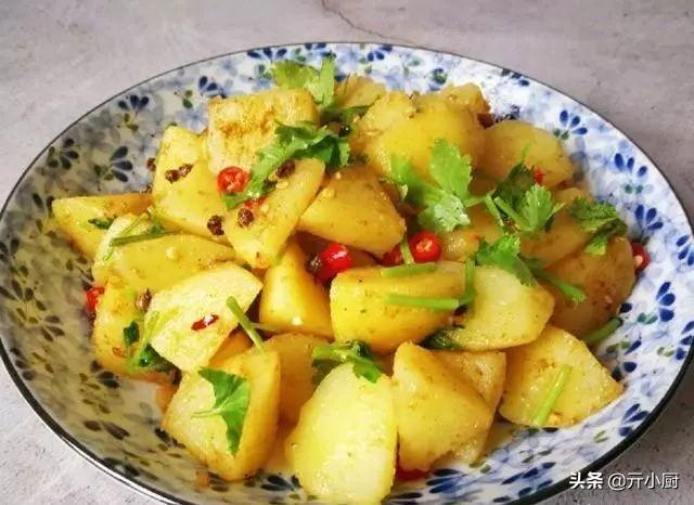 1、土豆去皮後,切成滾刀狀;