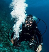 汪洋潛水降龍十八掌之十三,大量漏氣之調節器呼吸。