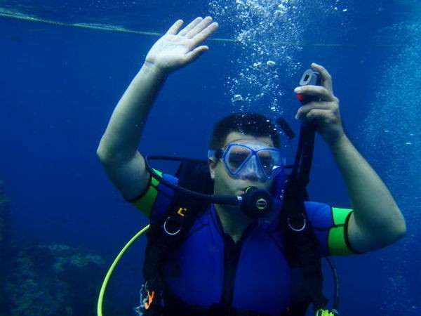 汪洋潛水降龍十八掌之十,管理你的空氣,與借用潛伴的備用氣源呼吸。
